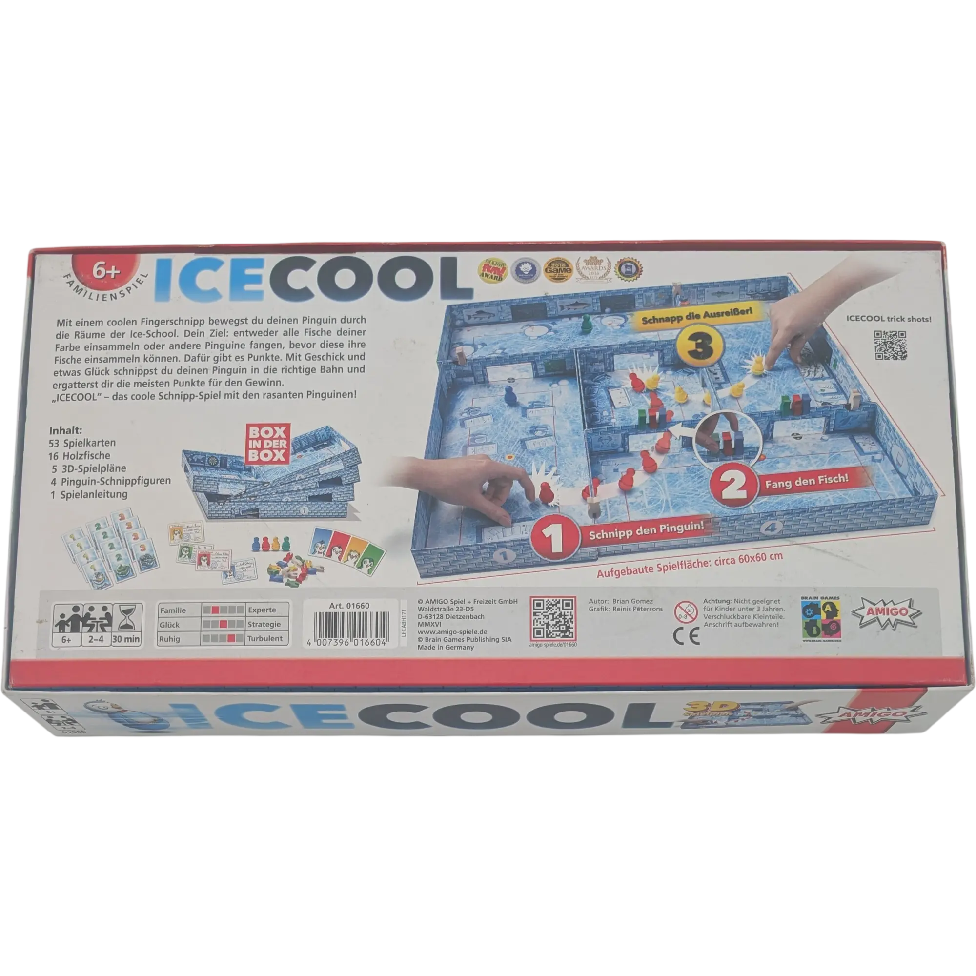 Der coolste Schulausflug aller Zeiten! In ICE Cool von Amigo schlüpfen die Spieler in die Rollen von frechen Pinguin-Schülern, die versuchen, in den Pausen Fische zu stibitzen. Doch Vorsicht: Der Hausmeister ist ihnen dicht auf den Fersen! Ein rasanter Spielspaß mit Suchtfaktor auf secondhandgame.de.