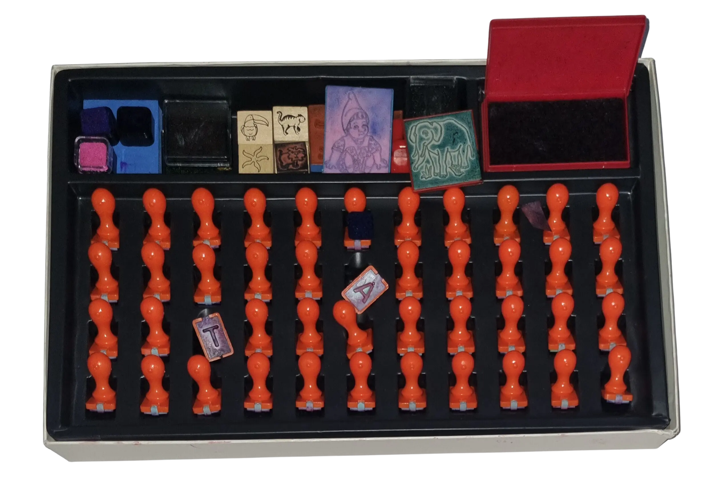 - Zustand gebraucht, vollständig jedoch ohne Papiervorlagen, Stempelkissen ausgetrocknet
