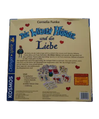 Die Sache mit der Liebe ist gar nicht so einfach! Das müssen auch Sprotte, Melanie, Frieda, Wilma und Trude feststellen. Die wilden Hühner sind gerade alle irgendwie mit dem verflixten Thema Liebe beschäftigt: Sprotte ist mit Fred zusammen, Melanie schwärmt für Willi, Frieda geht mit Maik... Alle Spielerinnen versuchen gleichzeitig, die richtigen Paare zu sammeln. Dies wäre einfach, wenn man nicht auf die Karten der Mitspielerinnen angewiesen wäre. Wer die richtigen Karten auf der Hand hat, muss schnell handeln. Dann zeigt sich, wie reaktionsstark die Mitspielerinnen sind!