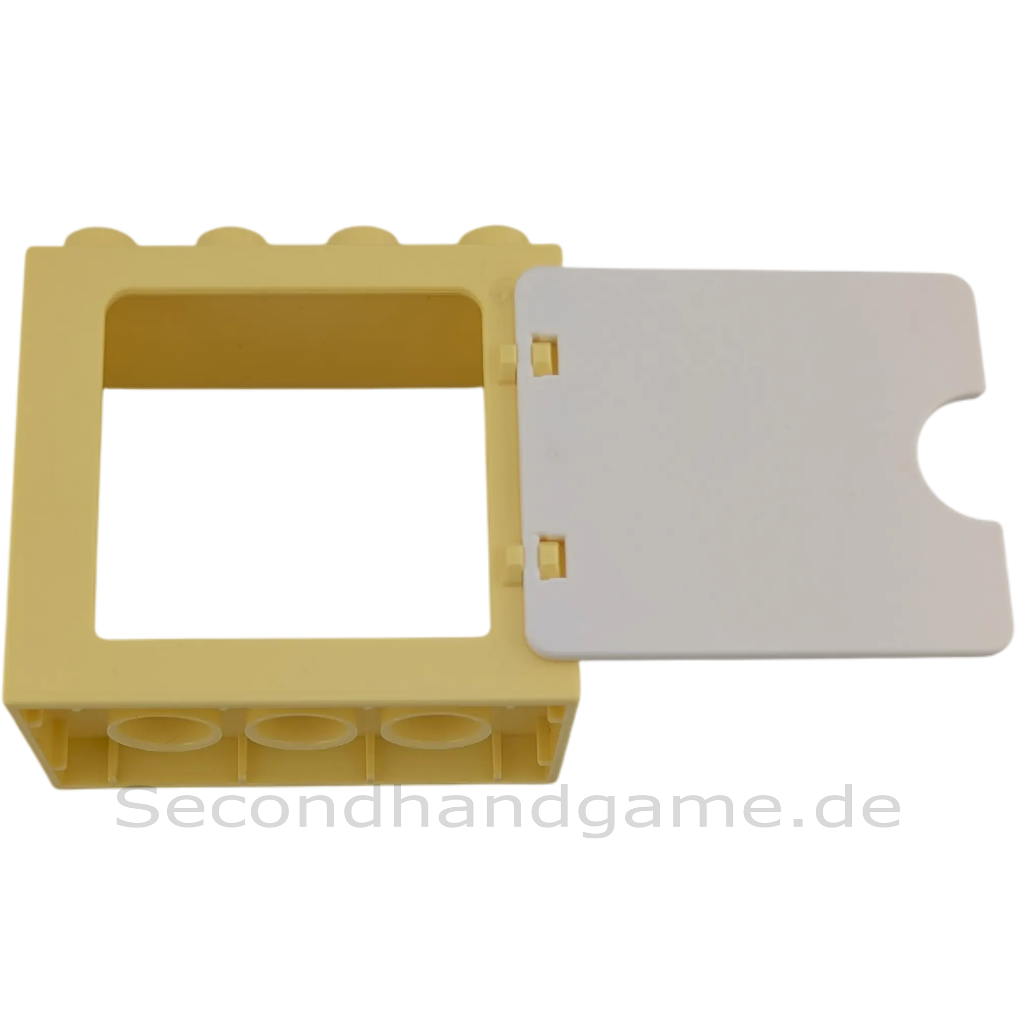 Dieses praktische Lego Duplo Funktionsbauteil (Artikelnummer 61649, oft auch für Fensterrahmen verwendet) ist ein vielseitiger Schrank oder ein Aufbewahrungselement. Das gesamte Element, welches die Seitenwände des Schranks bildet, ist in schönem Hellgelb gehalten. Die Besonderheit ist die weiße Tür an der Vorderseite, die oft beweglich ist und sich öffnen und schließen lässt, um Zubehör zu verstauen. Dieser Schrank ist ideal, um fantasievolle Rollenspiele rund um das Thema Wohnen, Ordnung halten, Küche, oder Kinderzimmer in der Duplo-Welt zu gestalten.