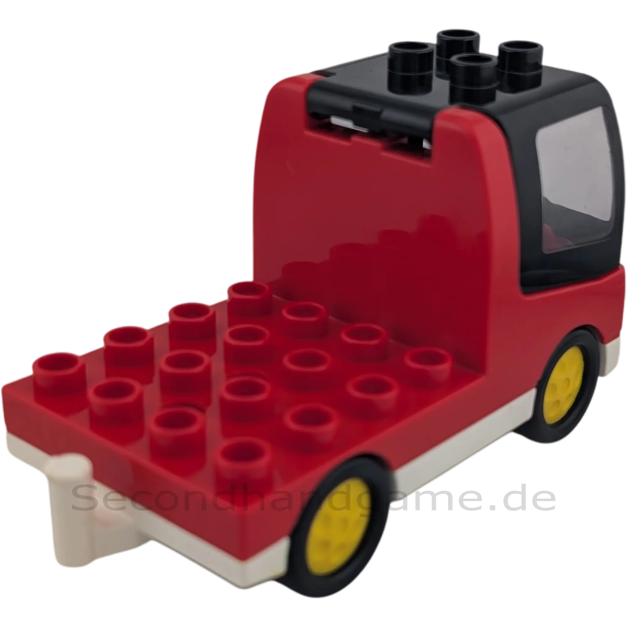 Besonderheit: Roter Lastwagen-Rumpf mit einer Halterung für ein Klappdach. Das Klappdach ermöglicht es der Duplo Figur, leicht in das Fahrzeug gesetzt und herausgenommen zu werden, was das Rollenspiel erleichtert.
