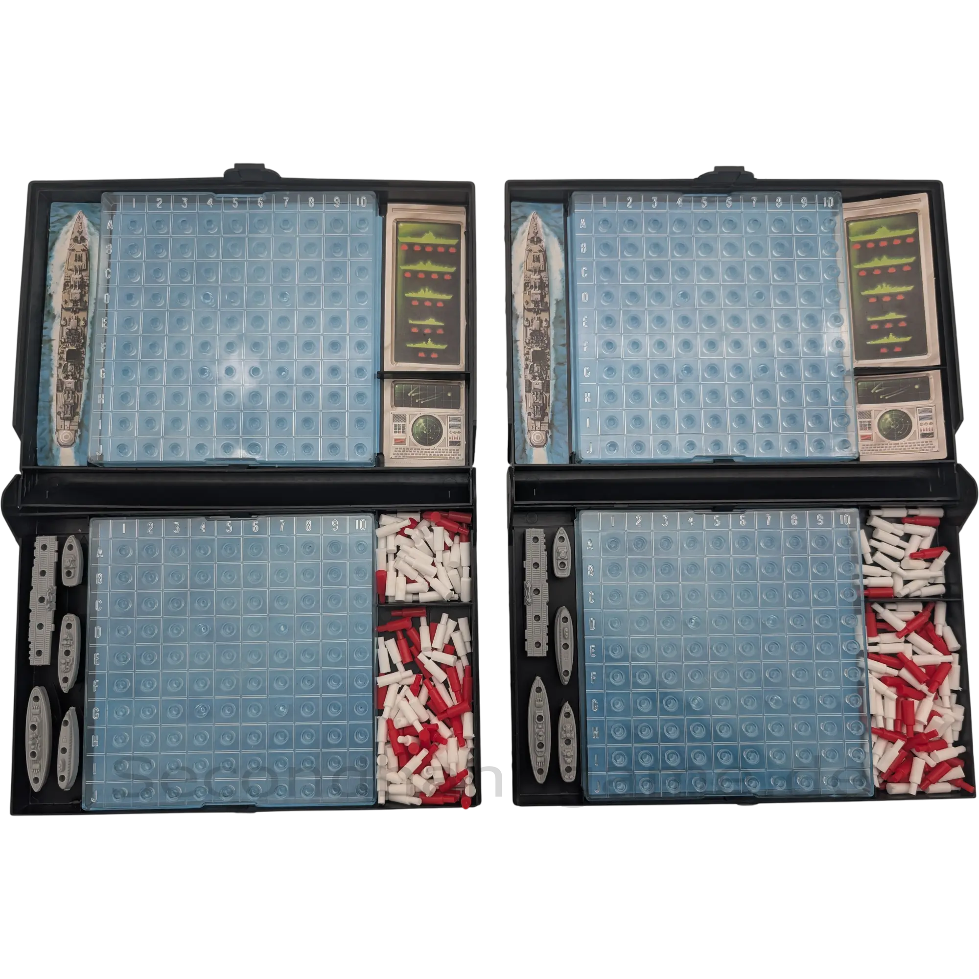Besonderheit: Die klassische Version des Schiffeversenken mit den typischen, separaten Kunststoff-Spielkonsolen (einer für jeden Spieler).