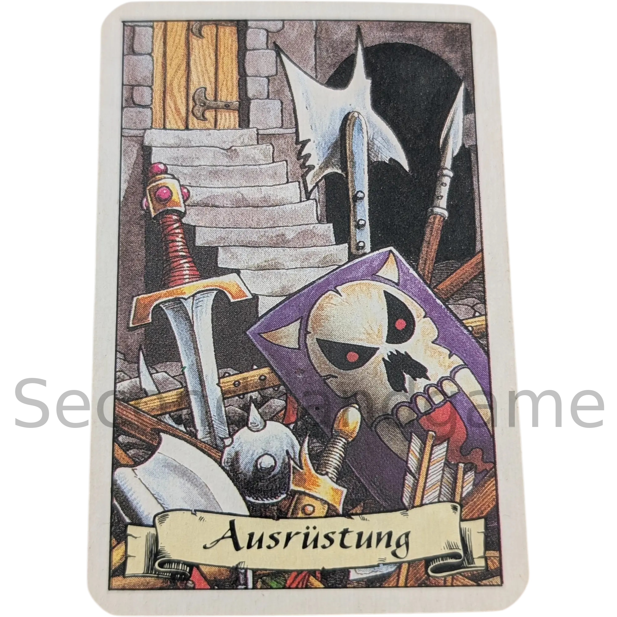| Spielmaterial | Kampfwürfel (4 Stück, mit Totenköpfen und Schilden), Zauberkarten, Ausrüstungskarten |