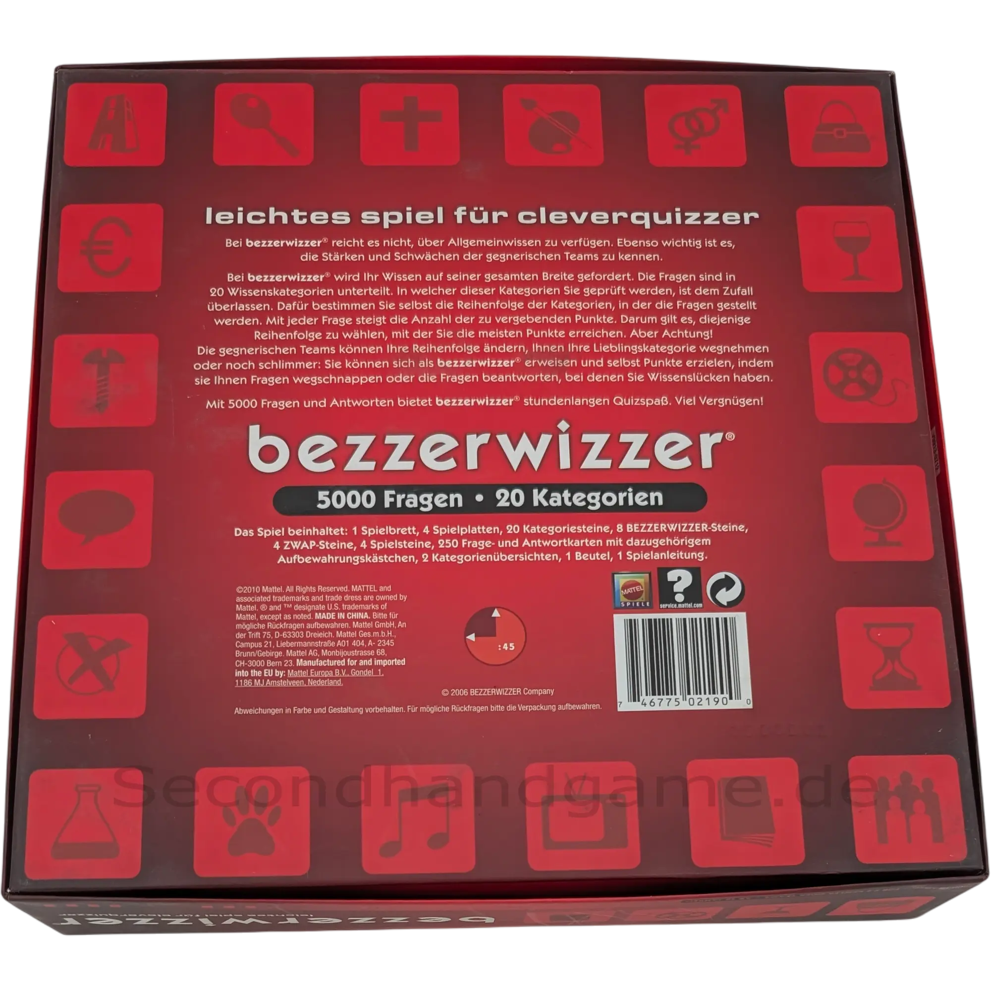 Erleben Sie spannende Runden mit dem Wissensspiel Bezzerwizzer von Mattel. Mit 5000 Fragen in 20 verschiedenen Kategorien ist abwechslungsreicher Spielspaß garantiert. Stellen Sie Ihr Wissen unter Beweis und nutzen Sie strategische Vorteile durch das Beantworten von gegnerischen Fragen oder das Tauschen von Kategorien. Ein Muss für alle Quiz-Fans!