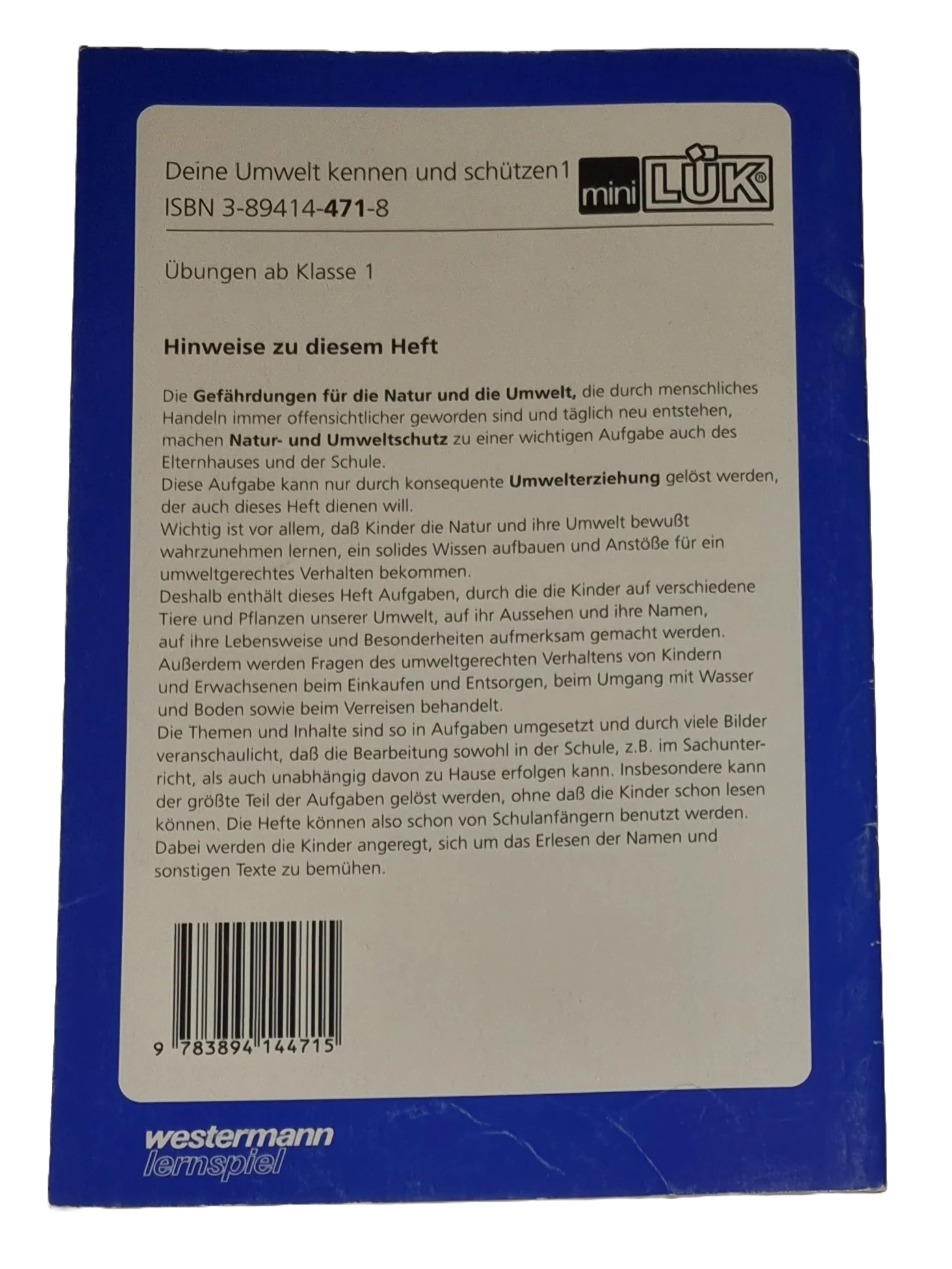 Produktinformationen "Mini Lük Deine Umwelt kennen und schützen 1"