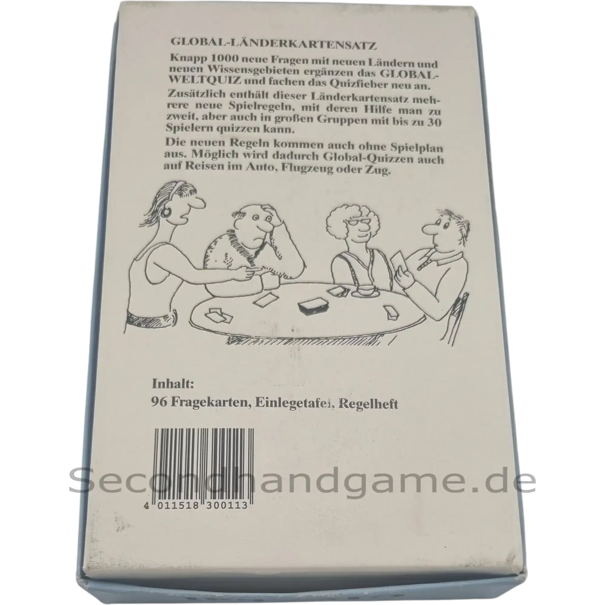 Entdecken Sie die Welt neu mit dem Global Länderkartensatz! Dieses spannende Quizspiel erweitert das Global-Weltquiz um fast 1000 neue Fragen zu neuen Ländern und Wissensgebieten. Dank der flexiblen Regeln kann es ganz ohne Spielplan gespielt werden – ideal für Reisen im Auto, Flugzeug oder Zug. Fordern Sie Ihre Freunde und Familie heraus und finden Sie heraus, wer die Welt am besten kennt. Ein fesselndes Wissensspiel für große und kleine Runden.