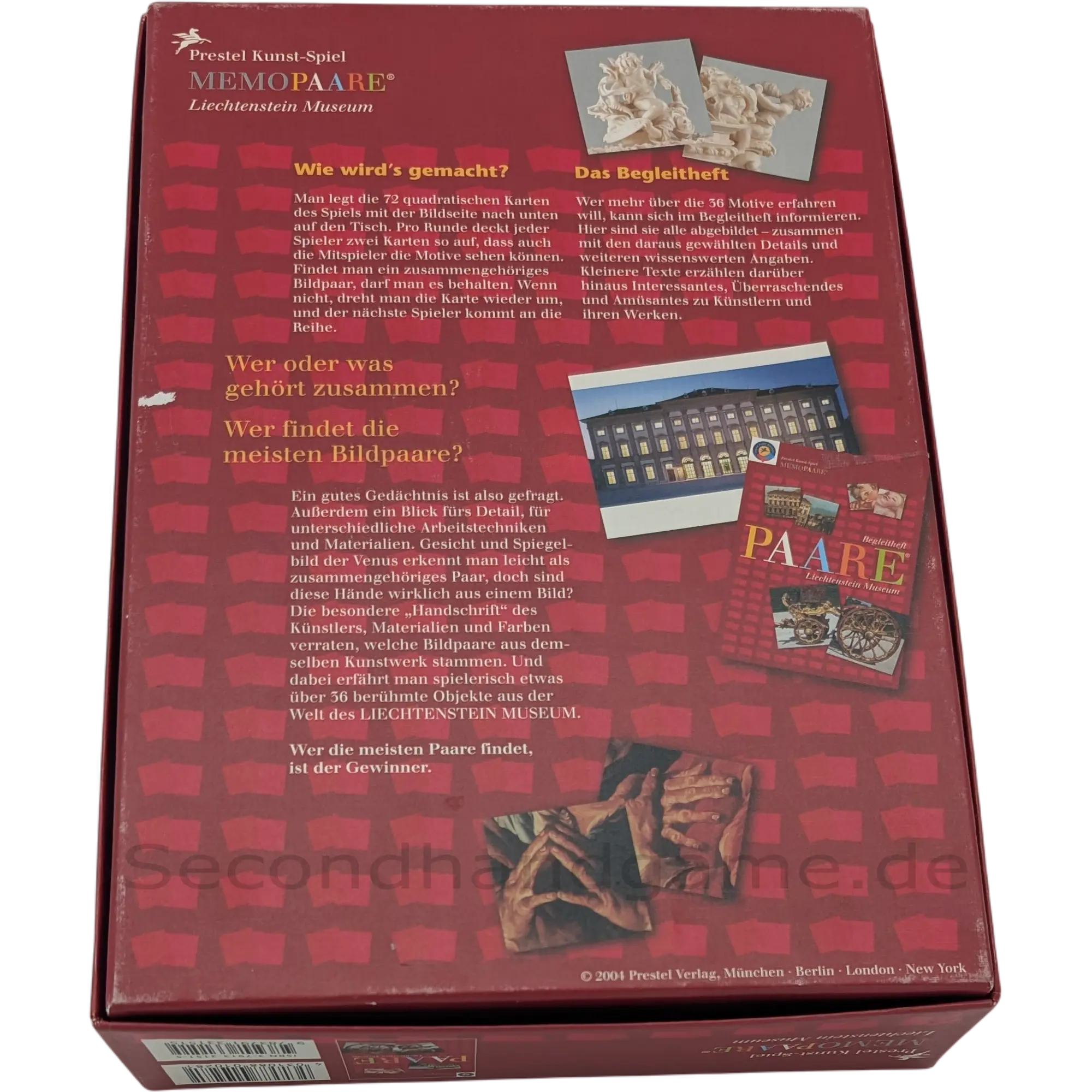 Entdecken Sie die Kunstwelt des Liechtenstein Museums mit diesem faszinierenden Memospiel von Prestel. Bei Memopaare ist ein gutes Gedächtnis und ein Auge für Details gefragt. Finden Sie die zusammengehörigen Bildpaare aus 36 berühmten Kunstwerken. Wer die meisten Paare sammelt, gewinnt das Spiel und lernt dabei spielerisch die Meisterwerke kennen. Ein tolles Spiel für die ganze Familie.