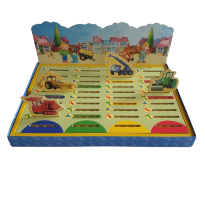 Welcher der fleißigen Helfer erreicht wohl zuerst die Baustelle. Hilfst du Bob der Baumeister und Wendy? Bereits nach 5 bis 10 Minuten gespielt, ideal da kleine Kinder sich noch nicht solange konzentrieren können!
