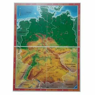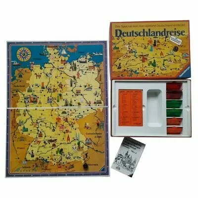 Mit doppelseitigem Großspielplan - geografische Deutschlandkarte auf der einen und bebilderte Karte auf der anderen. Mit 180 farbig illustrierten Städtekarten, dazu Hinweise auf über 60 Sehenswürdigkeiten.