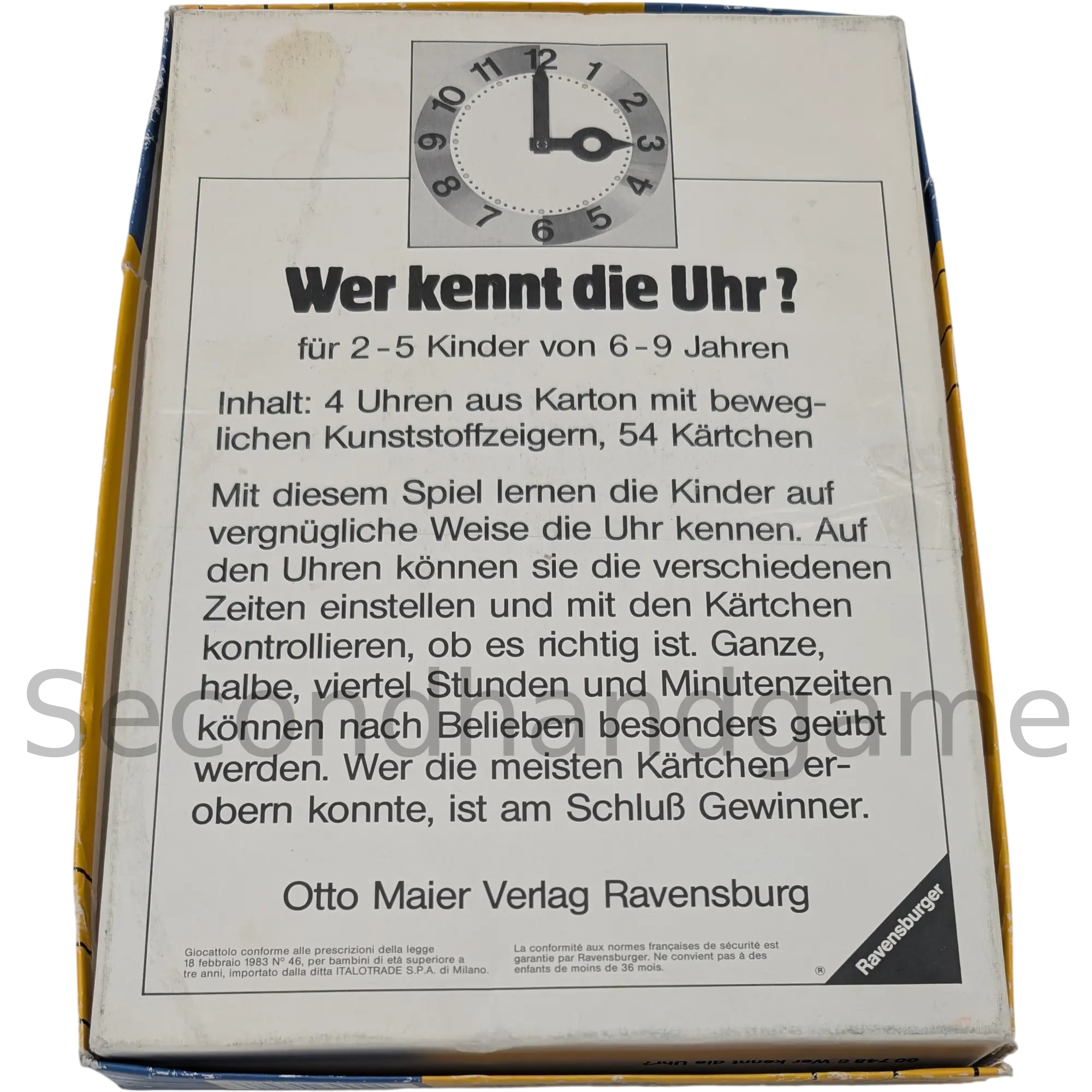 Enthält vier große, bunte Uhren mit beweglichen Zeigern! Spiel von 1985