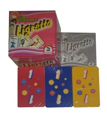 Schmidt Ligretto Disney Kim Possible ist eine thematisch angepasste Version des schnellen Kartenspiels Ligretto, speziell für Fans der Zeichentrickserie "Kim Possible". Wie beim Original-Ligretto versuchen die Spieler gleichzeitig, Karten gleicher Farbe in aufsteigender Reihenfolge (von 1 bis 10) in die Mitte zu legen. Jeder Spieler hat einen eigenen Kartenstapel ("Ligretto-Stapel") und versucht, diesen so schnell wie möglich abzubauen. Das Spiel ist rasant, erfordert schnelle Reaktionen und sorgt für viel Aufregung am Tisch. Die Karten sind mit Motiven der "Kim Possible"-Charaktere gestaltet.