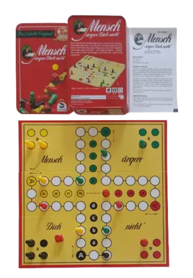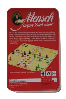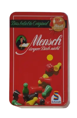 Schmidt Mensch ärgere dich nicht ist ein bekannter und beliebter Spieleklassiker für die ganze Familie. Diese Ausgabe wird in einer praktischen und stabilen Metalldose geliefert. Die Metalldose schützt das Spielmaterial und macht es ideal für Reisen oder zum Aufbewahren. Sie verleiht dem Spiel zudem eine wertigere Optik. Ziel des Spiels ist es, die eigenen Spielfiguren als Erster ins Ziel zu bringen, während man versucht, die Figuren der Mitspieler zu "ärgern" und vom Feld zu werfen.