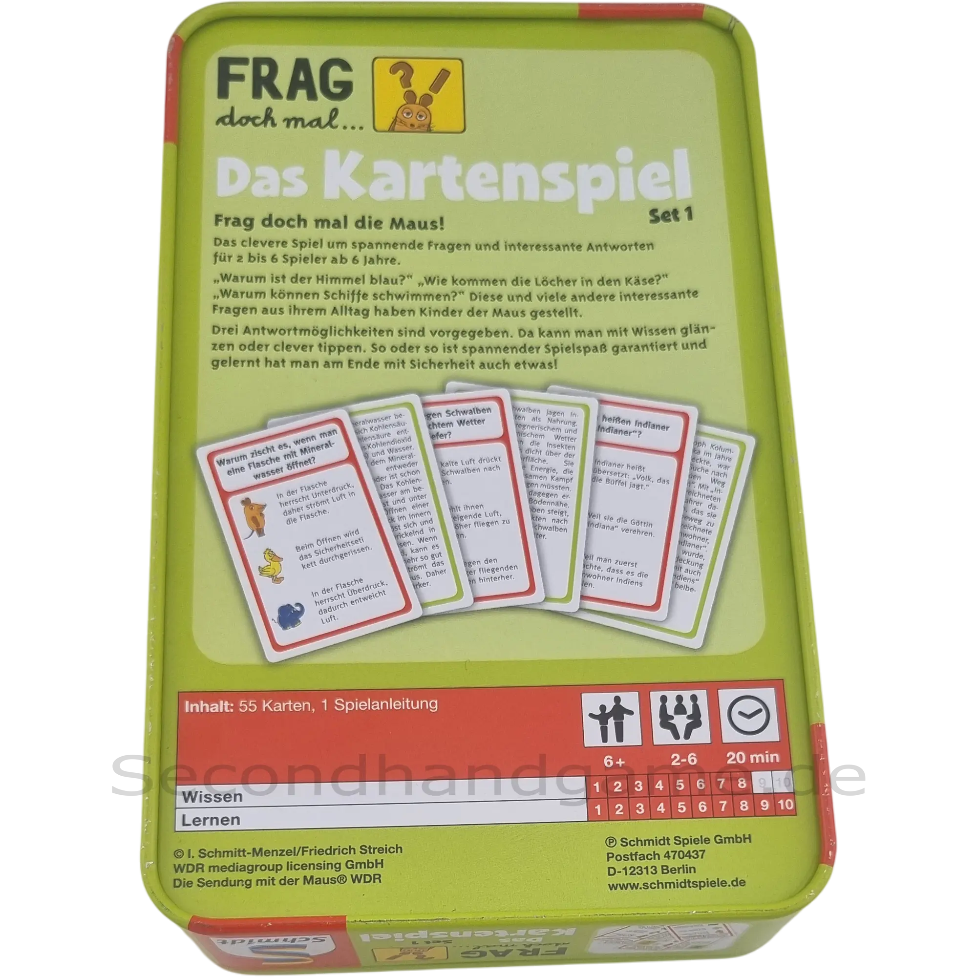 Entdecken Sie das unterhaltsame Kartenspiel 'Frag doch mal... Das Kartenspiel Set 1' von Schmidt Spiele. Basierend auf der beliebten 'Sendung mit der Maus', bietet dieses Spiel spannende Fragen und interessante Antworten für die ganze Familie. Es ist auch als Ergänzungsset zum großen 'Frag doch mal...' Spiel geeignet und sorgt für lehrreichen Spielspaß. Mit 55 Karten voller Wissen können Spieler ihr Können unter Beweis stellen.