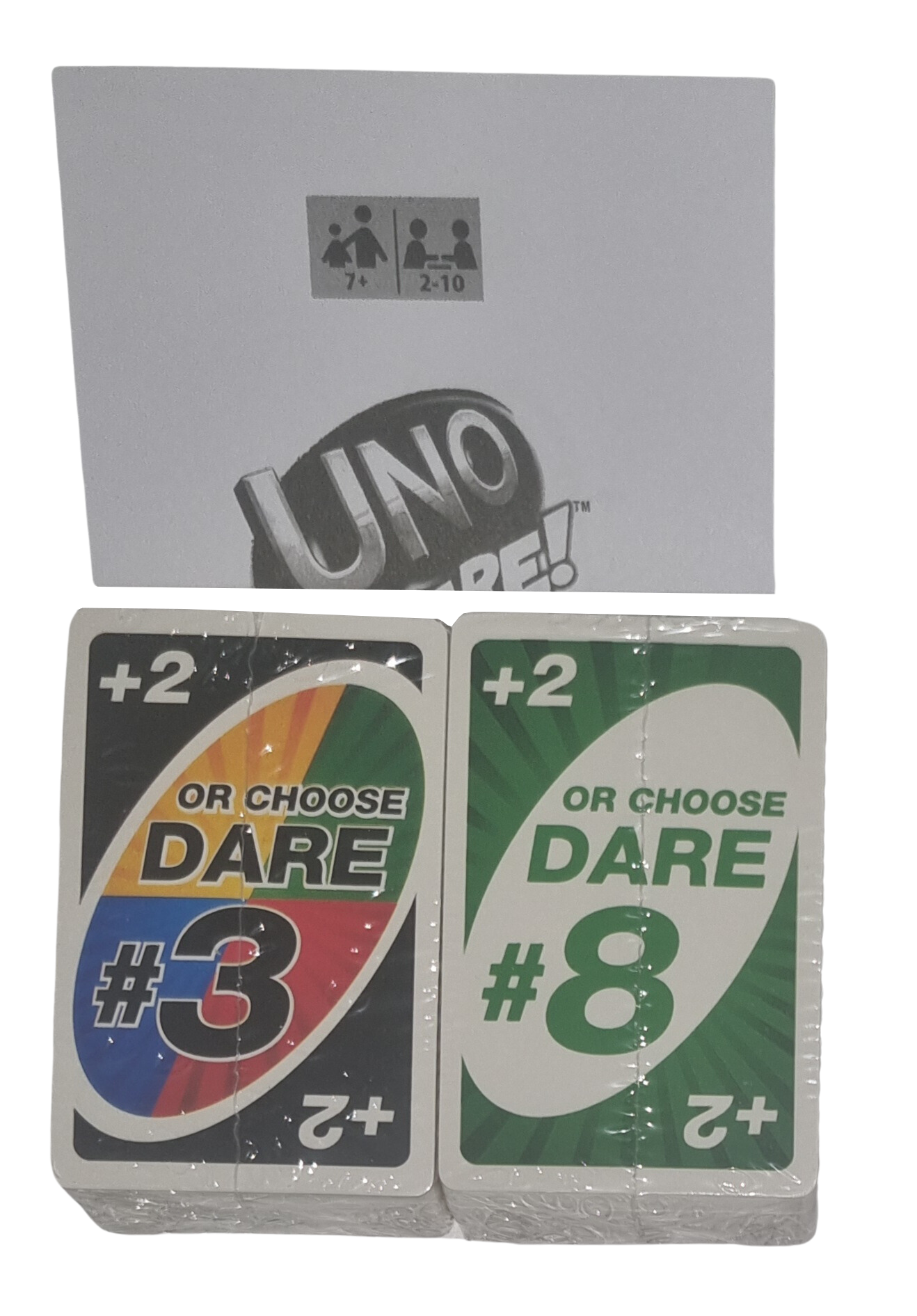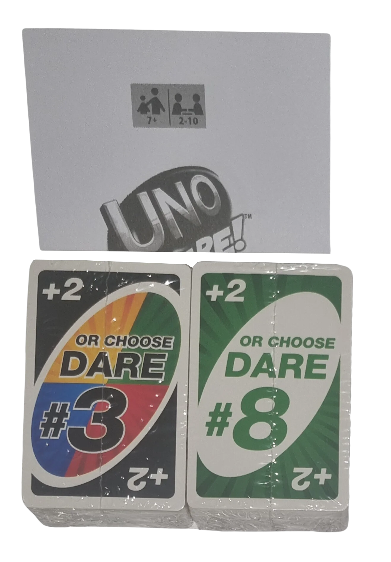 Uno Dare! ist eine aufregende und actionreiche Variante des beliebten Kartenspiels Uno, die für Spieler ab 7 Jahren geeignet ist und eine neue Ebene an Interaktion und Spaß hinzufügt! Zusätzlich zu den klassischen Uno-Regeln bringt diese Edition "Wahrheit oder Pflicht" (Dare!)-Karten ins Spiel. Wenn ein Spieler eine "Dare!"-Karte legt, muss der nächste Spieler entweder eine Karte ziehen oder eine lustige und oft alberne Aufgabe erfüllen. Dies kann von "Zeige deine beste Tanzbewegung" bis zu "Erzähle einen Witz" reichen und sorgt für unvorhersehbare und urkomische Momente im Spiel. Uno Dare! fördert Spontanität und sorgt für jede Menge Lacher. Das Ziel bleibt, als Erster alle Karten abzulegen, aber die Dares machen jede Runde zu einem unvergesslichen Erlebnis.