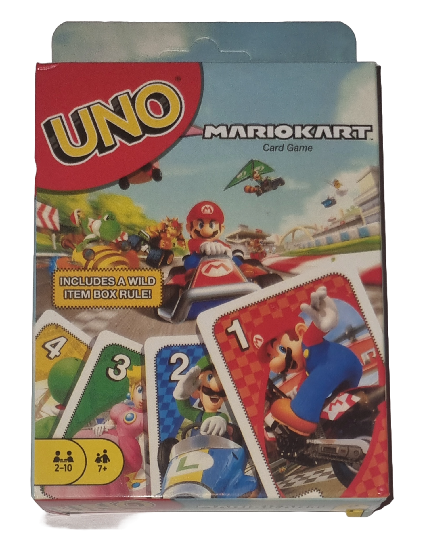 Uno Mario Kart ist eine spannende und farbenfrohe Variante des klassischen Kartenspiels Uno, die die beliebten Charaktere und Elemente aus der Welt von Mario Kart integriert. Anstatt nur Farben und Zahlen zu spielen, kommen hier spezielle Mario Kart Actionkarten hinzu, die das Spielgeschehen auf einzigartige Weise beeinflussen. Spieler können sich mit ihren Lieblingscharakteren wie Mario, Luigi, Peach oder Donkey Kong identifizieren und erleben Rennaction direkt am Spieltisch. Das Spiel ist für Kinder ab 7 Jahren geeignet und bietet spannende Wendungen, die Strategie und Glück kombinieren. Das Ziel bleibt, als Erster alle Karten abzulegen, aber Vorsicht vor Item-Box-Karten, die den Rennverlauf komplett verändern können!