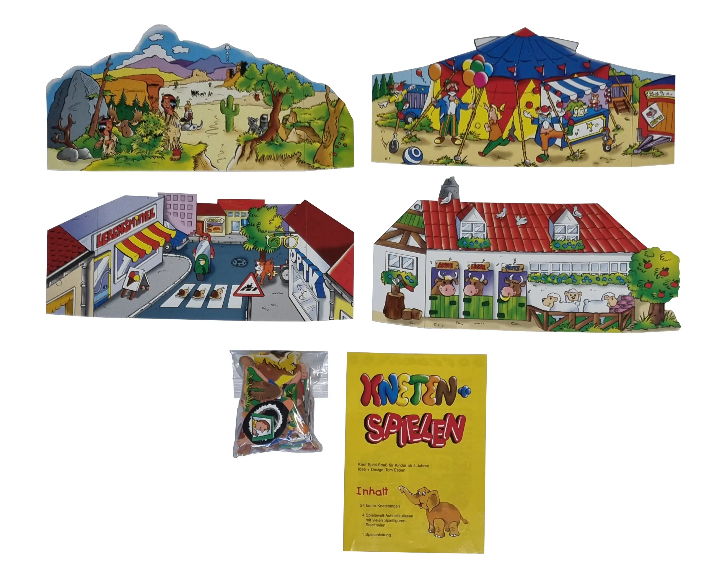 Kneten und Spielen. Zirkus Kulisse, Bauernhof Kulisse, Kaufladen Kulisse und Indianer Kulisse