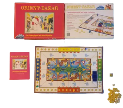 Orient-Bazar: Das Einkaufsspiel ist ein farbenfrohes und spannendes Brettspiel, das für Spieler ab 8 Jahren geeignet ist und sie in die faszinierende Welt eines orientalischen Marktes entführt! In diesem Spiel schlüpfen die Teilnehmer in die Rolle von cleveren Händlern, die auf dem Basar einkaufen, feilschen und ihre Waren geschickt tauschen. Ziel ist es, die besten Geschäfte zu machen und die begehrtesten Waren zu sammeln. Das Spiel kombiniert Glück (durch Würfeln oder Kartenziehen) mit strategischen Entscheidungen und Verhandlungsgeschick. Es fördert spielerisch das Rechnen, den Umgang mit Geld und das Einschätzen von Werten. Ein ideales Spiel für Familienabende, das für viel Interaktion und lebhaftes Treiben am Spieltisch sorgt.