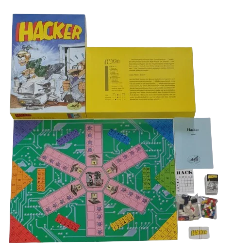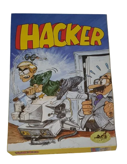 Bei dem Spiel Hacker werden die Spieler als Sofwehr-Ingenöre von Konkurrenzunternehmen bei Biäm eingeschleust. Jeder will als Erster an die brandneuen Biäm-Entwicklungen rankommen, die sicher in den Datenbanken des Großrechners liegen. Dazu muß natürlich erst einmal der Geheimcode geknackt werden. In jeder der sechs Abteilungen liegt eine dieser Geheimzahlen. Kein Problem für einen Profi-Hacker. Wären da nicht die anderen Spione, der normale Geschäftsbetrieb und vor allem der Boss, der jede Runde mal nach dem rechten schaut...