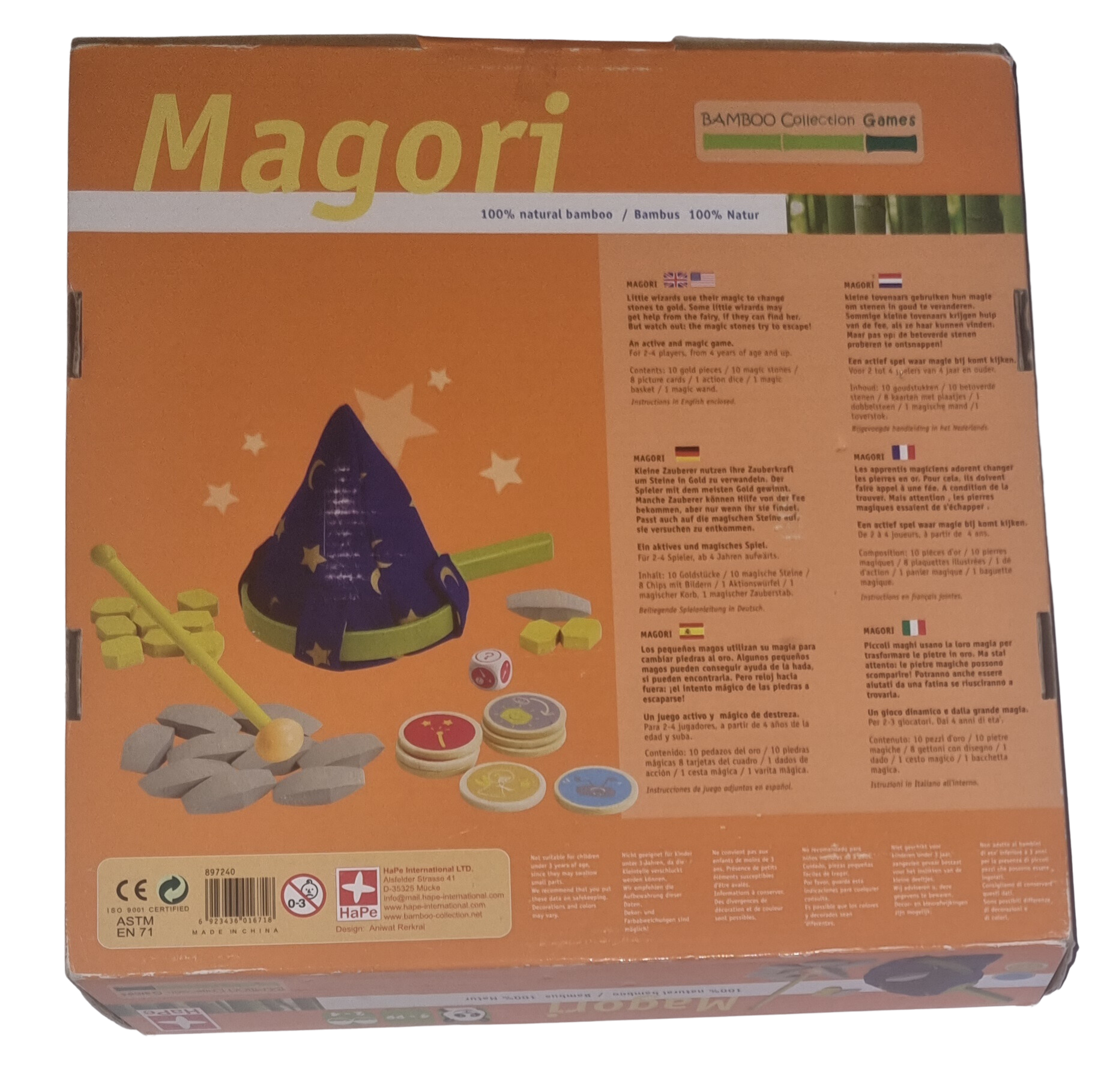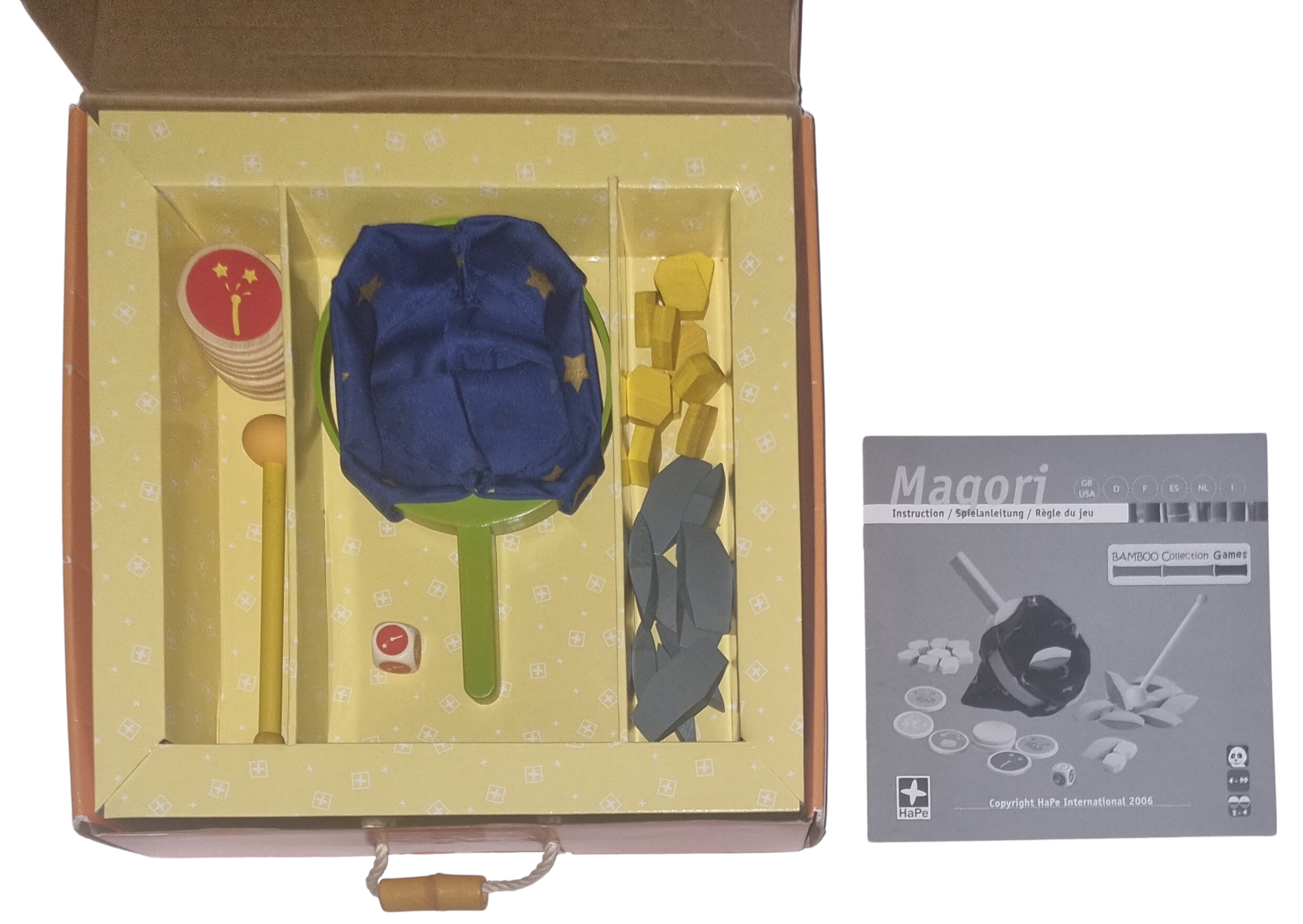 100% Natur Bambus. Kleine Zauberer nutzen ihre Zauberkraft um Steine in Gold zu verwandeln. Der Spieler mit dem meisten Gold gewinnt. Manche Zauberer können Hilfe von der Fee bekommen, aber nur ihr sie findet. Passt auch auf die magischen Steine auf, sie versuchen zu entkommen.