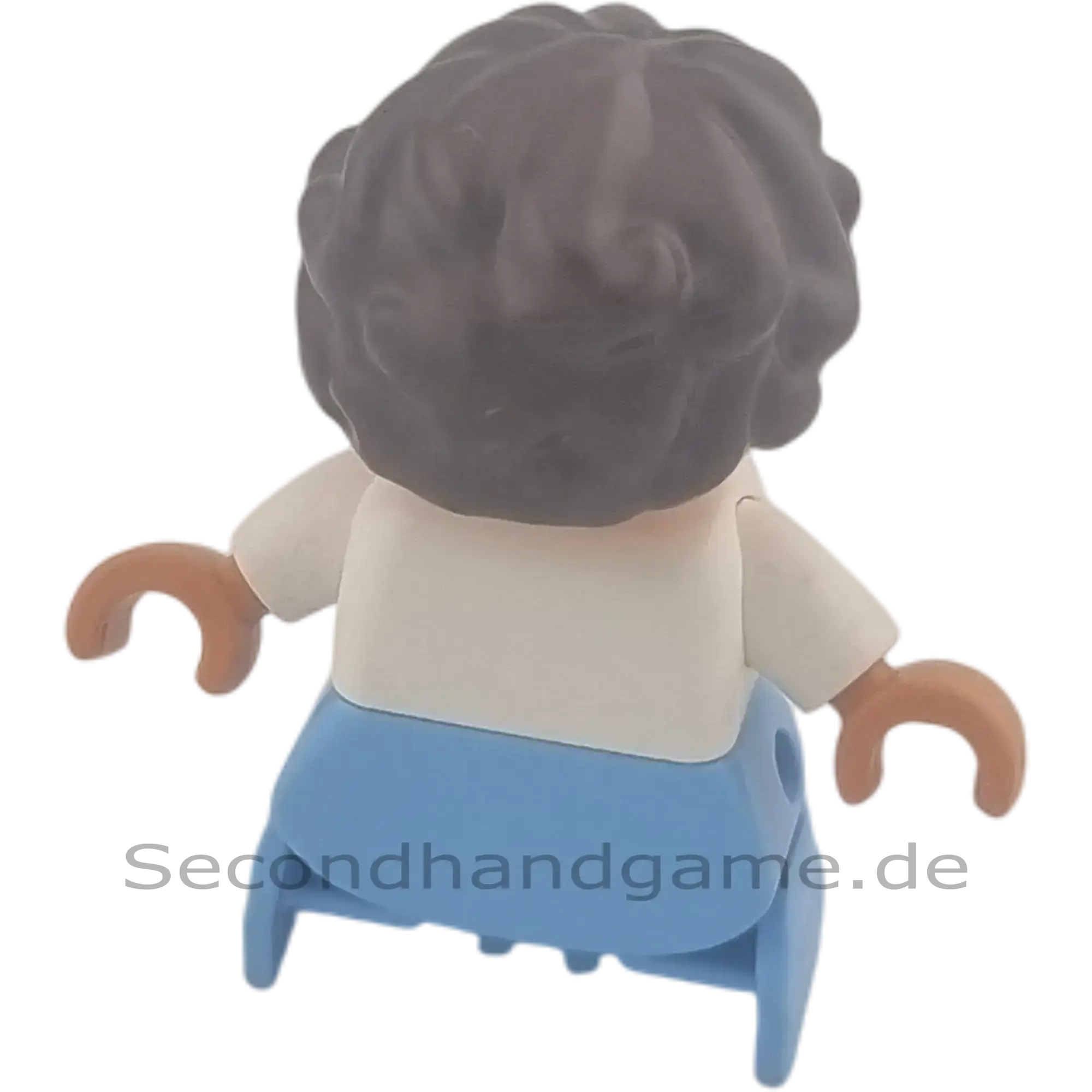 Entdecken Sie diese charmante Lego Duplo Figur, die einen Jungen darstellt. Die Figur trägt ein weißes Shirt mit hellblauen Streifen und eine passende hellblaue Hose. Mit seinen freundlichen blauen Augen und dem dunklen, wuscheligen Haar ist er eine tolle Ergänzung für jede Duplo Sammlung und regt zu fantasievollen Rollenspielen an.