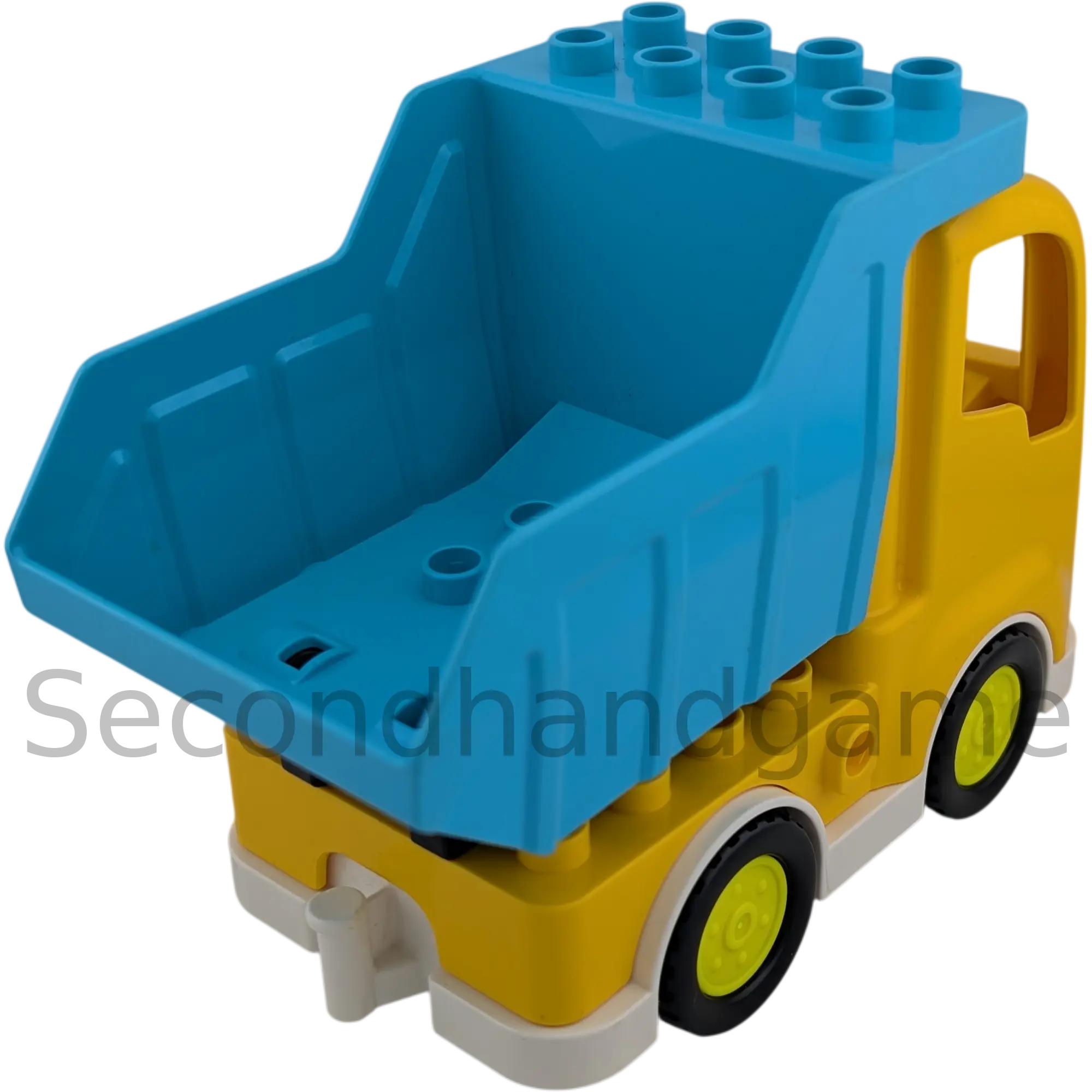 Produktinformationen "Lego Duplo Lastwagen Gelb Weiß mit neongelber Felge und blauer Container kippbar"