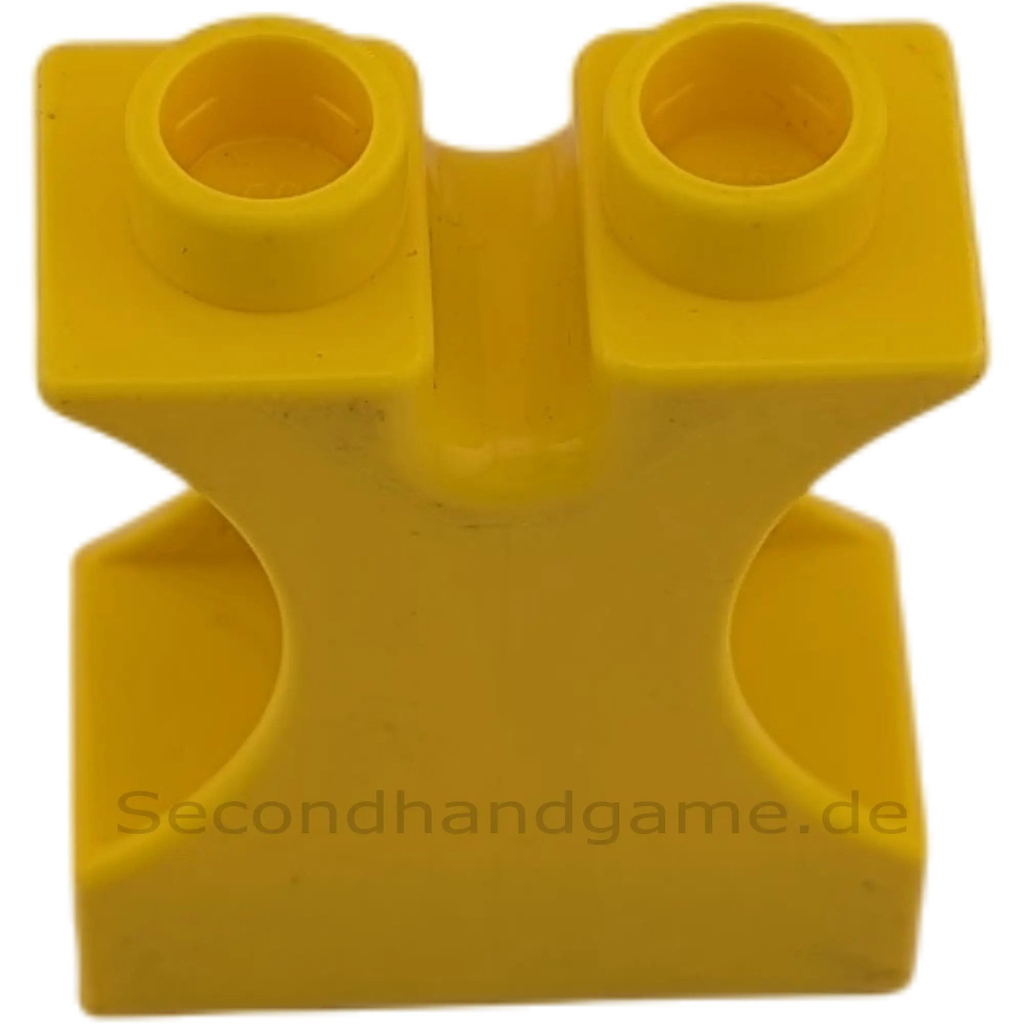 Dies ist ein seltener Lego Duplo Funktionsstein in der Farbe Gelb. Er hat die Abmessung 1x2x2 (ein Noppe breit, zwei Noppen lang, zwei Noppen hoch) und zeichnet sich durch seine spezielle Form aus: