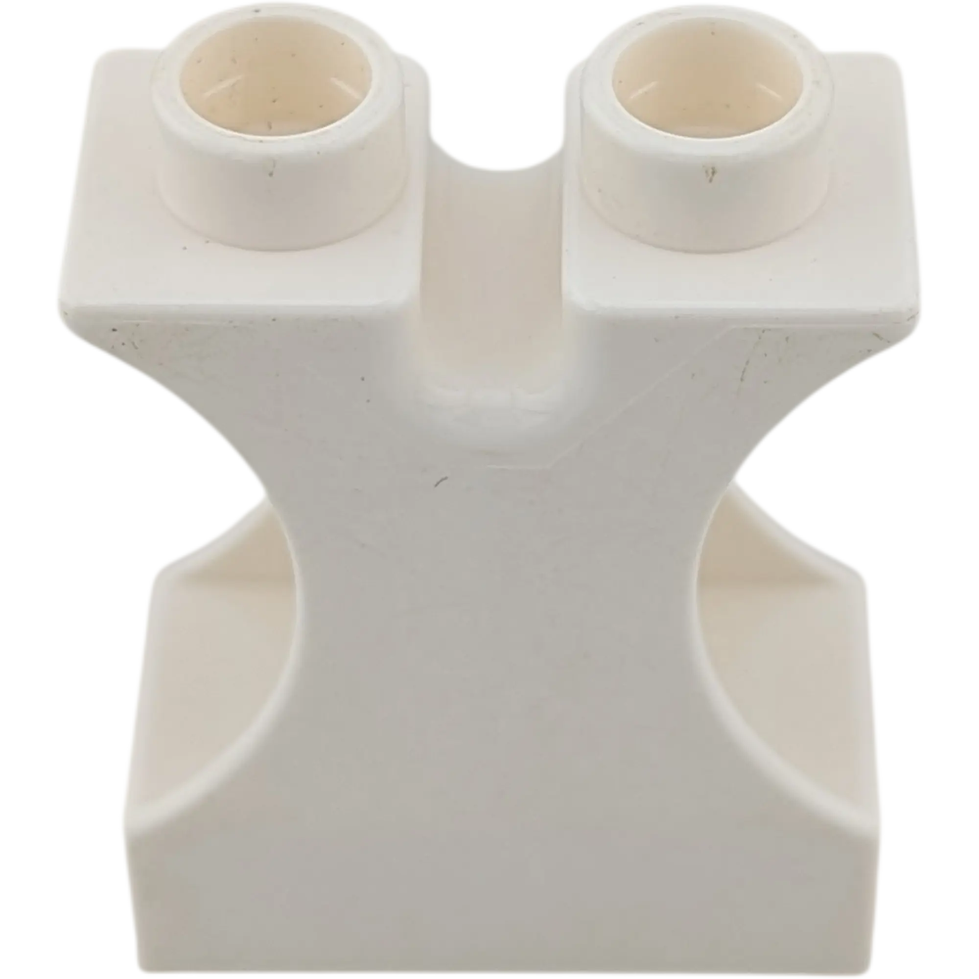 Dies ist ein seltener Lego Duplo Funktionsstein in der Farbe Weiß. Er hat die Abmessung 1x2x2 (ein Noppe breit, zwei Noppen lang, zwei Noppen hoch) und zeichnet sich durch seine spezielle Form aus: