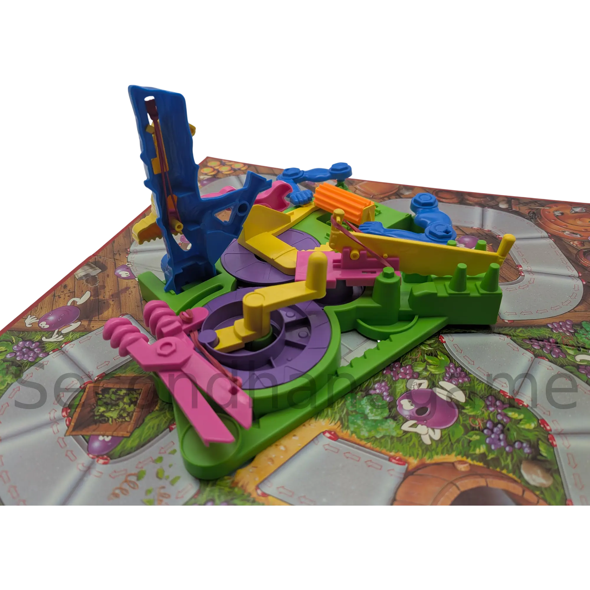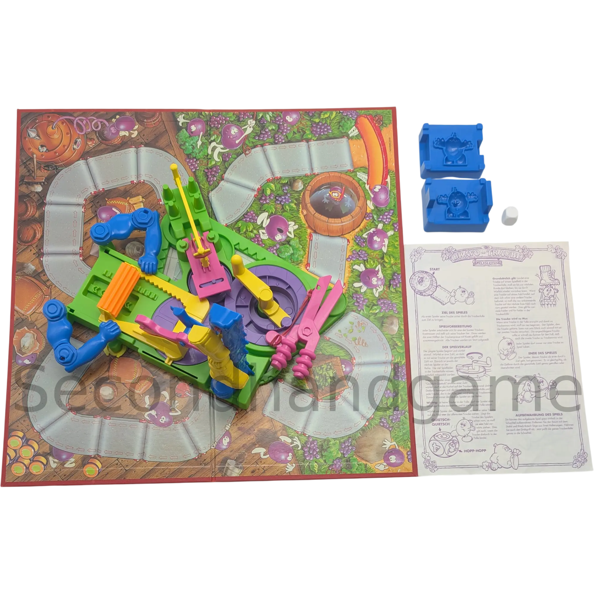 Das Besondere an diesem Spiel: Die Spielfiguren werden vor dem Start aus Knete selbst geformt. Im Laufe des Spiels müssen die Spieler ihre Trauben durch verschiedene Stationen wie die Traubenpresse oder das Fallbeil führen. Wer Pech hat oder unvorsichtig ist, dessen Figur wird buchstäblich "zerquetscht". Aber keine Sorge – aus der Knete lässt sich blitzschnell eine neue Traube formen, um wieder ins Geschehen einzugreifen.
