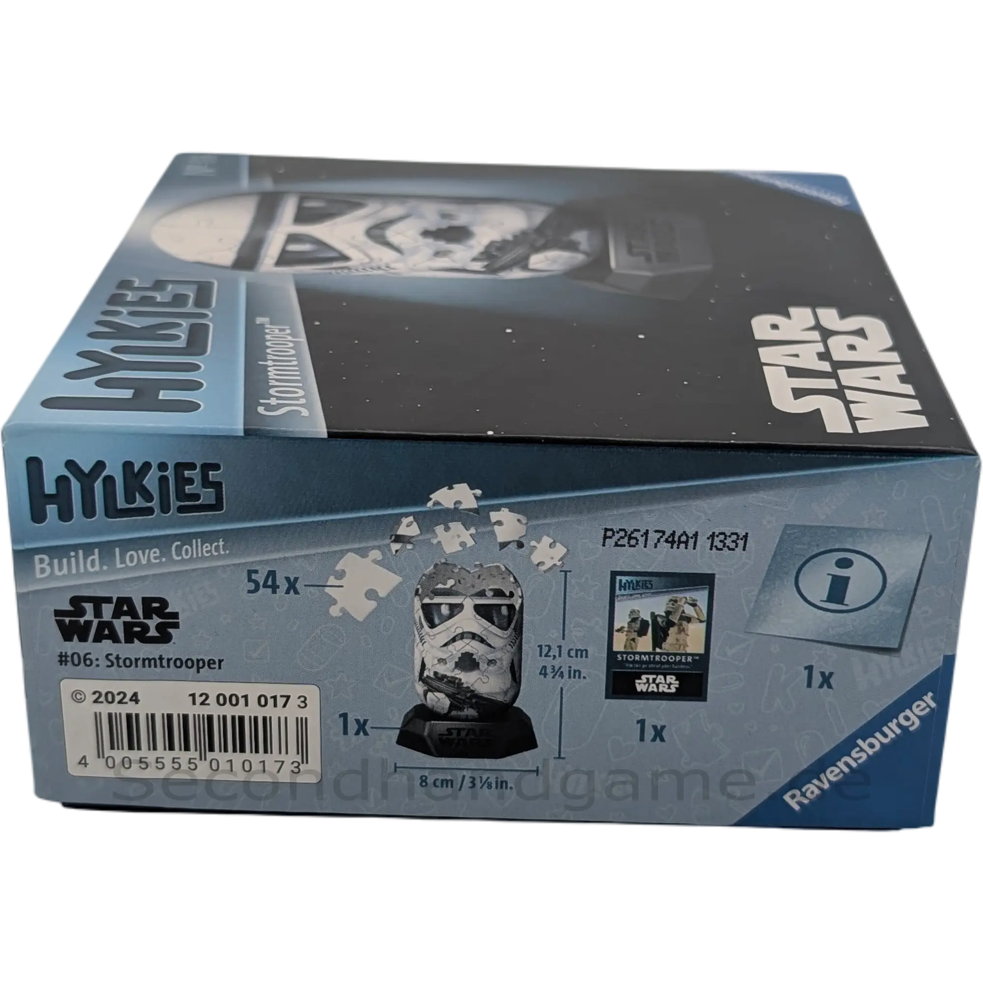 Entdecken Sie das Ravensburger 3D Puzzle des legendären Star Wars Stormtrooper Helms aus der Hylkies-Reihe. Dieses detailgetreue Modell besteht aus 54 Puzzleteilen und wird auf dem mitgelieferten Standfuß zu einem echten Hingucker. Ein Muss für jeden Star Wars Fan und Sammler unter dem Motto 'Build. Love. Collect.'.