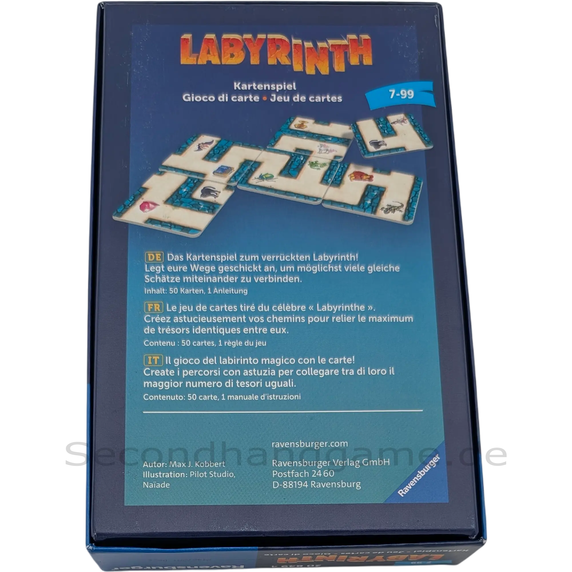 Entdecken Sie das Labyrinth Kartenspiel von Ravensburger, die spannende Kartenversion des beliebten Brettspiel-Klassikers 'Das verrückte Labyrinth'. In diesem Spiel legen die Spieler ihre Wegekarten geschickt an, um möglichst viele gleiche Schätze miteinander zu verbinden und so den Sieg zu erringen. Ein fesselndes Erlebnis für die ganze Familie, das strategisches Denken und ein wenig Glück erfordert. Das Spiel enthält 50 liebevoll gestaltete Karten und eine Anleitung.