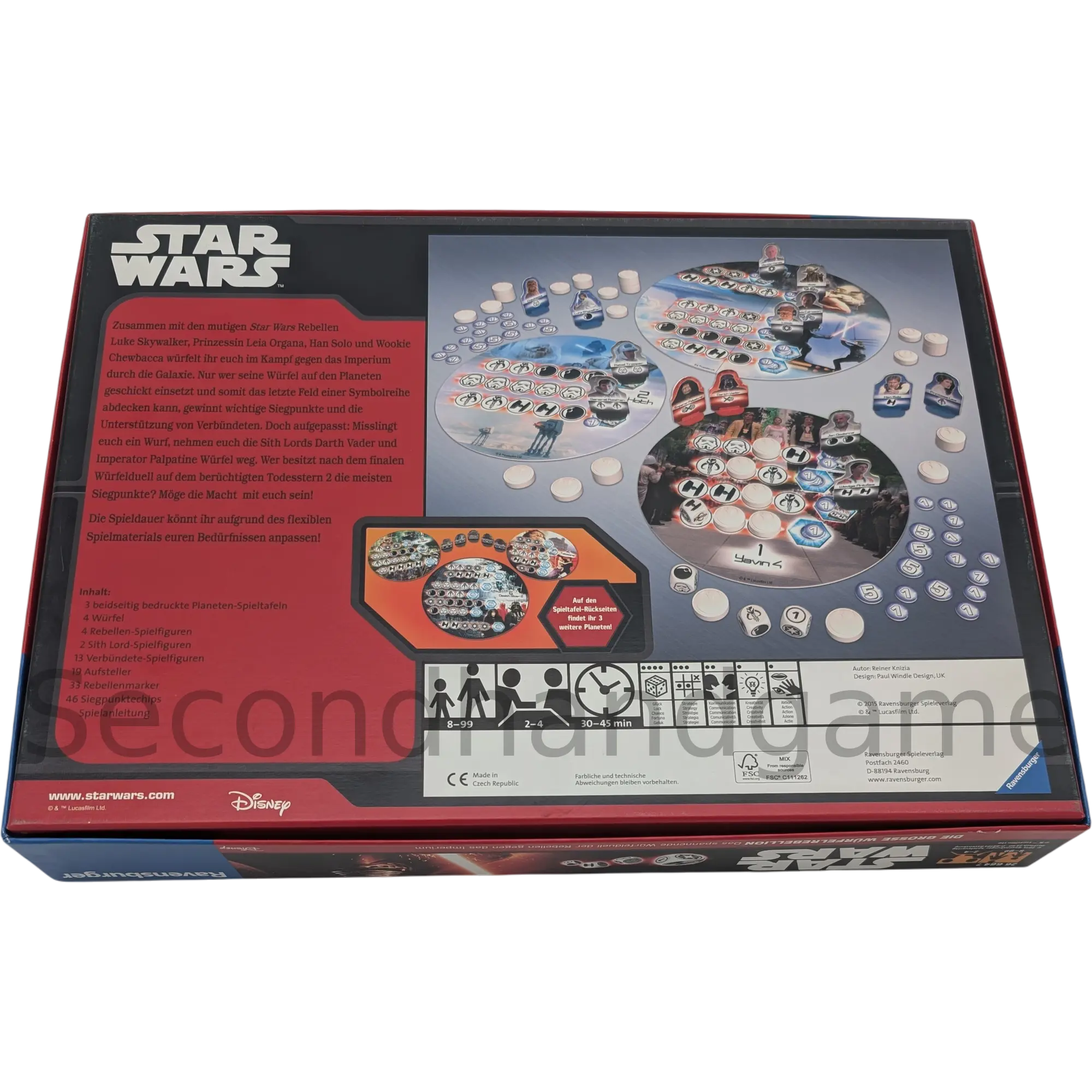 Besonderheit: Ein schnelles, leicht zugängliches Würfelspiel im Star Wars Universum, entwickelt vom mehrfach ausgezeichneten Autor Reiner Knizia. Die Spieler nutzen die Würfel, um Einheiten zu sammeln und die Rebellion gegen das Imperium zu führen.