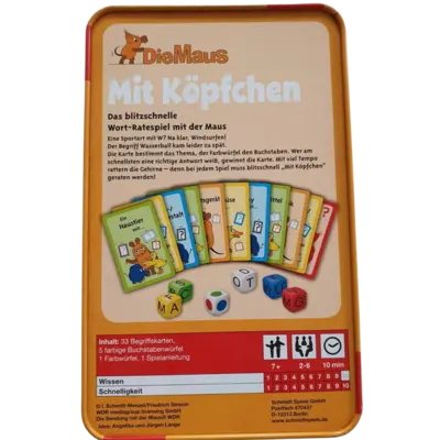 Das blitzschnelle Wort Ratespiel mit der Sendung mit der Maus in der Metalldose