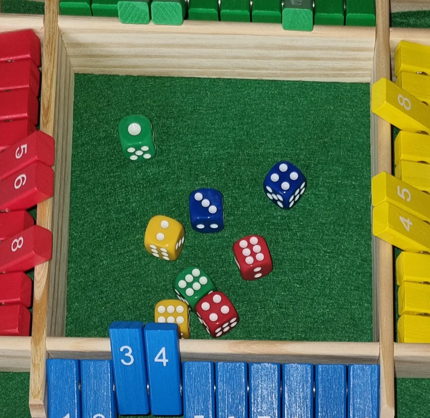 Shut the Box Klip Klap Klappbrett 4 Personen Farbig