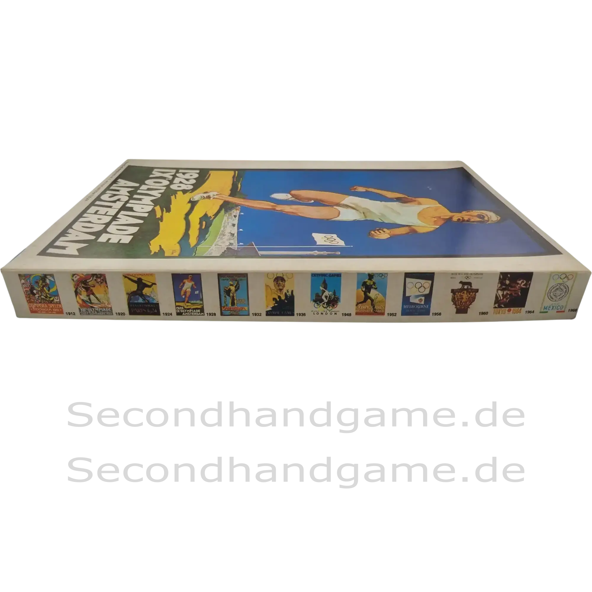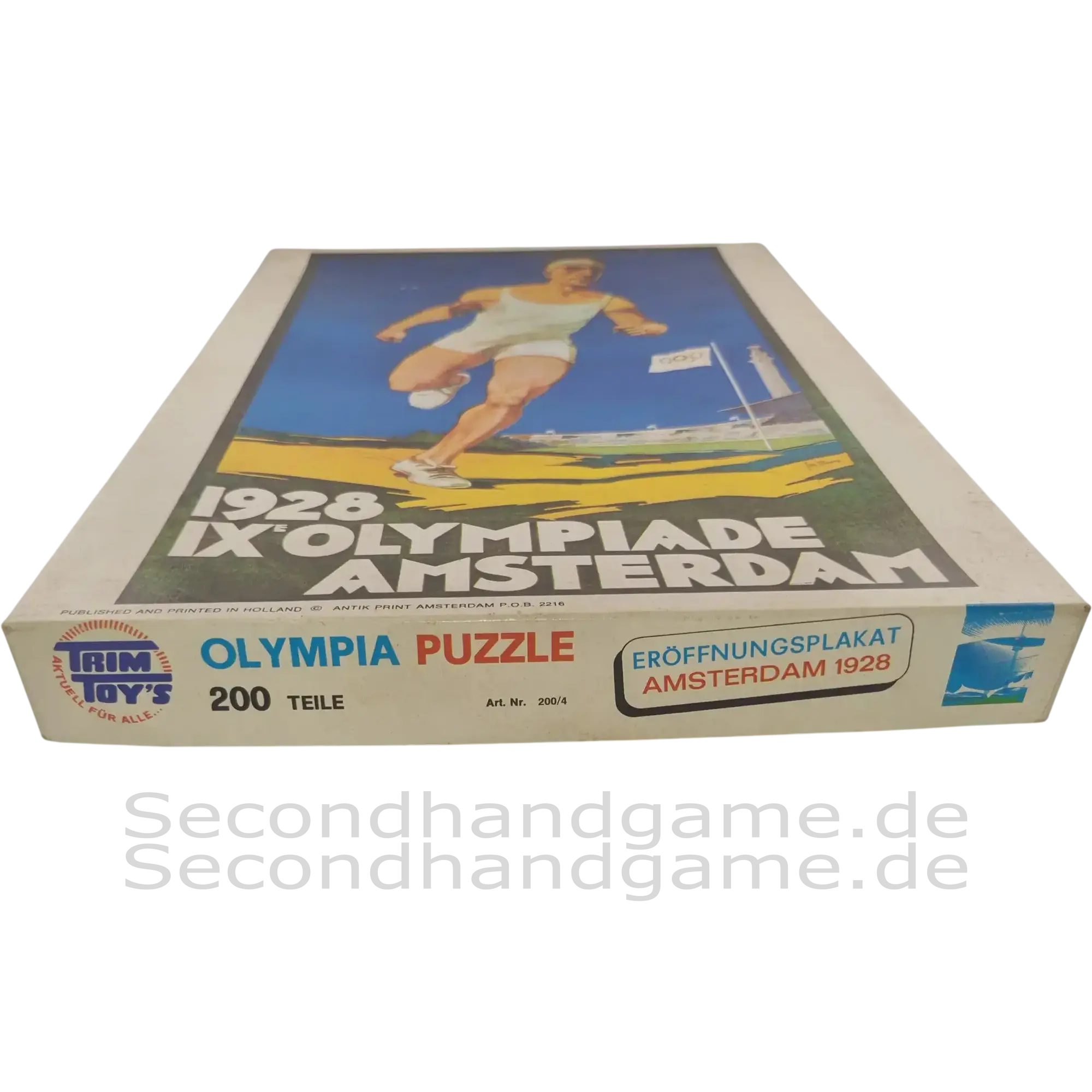 Erleben Sie ein Stück Sportgeschichte mit diesem seltenen Olympia Puzzle von Trim Joy's. Das Motiv zeigt das offizielle Eröffnungsplakat der IX. Olympiade in Amsterdam 1928. Mit 200 Teilen bietet dieses Puzzle einen nostalgischen Puzzlespaß und ist ein wunderbares Sammlerstück für alle Fans der Olympischen Spiele und Vintage-Puzzles. Die Schachtel zeigt auf der Seite eine Chronik der Olympia-Plakate von 1912 bis 1968.